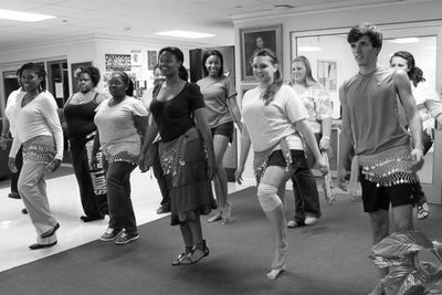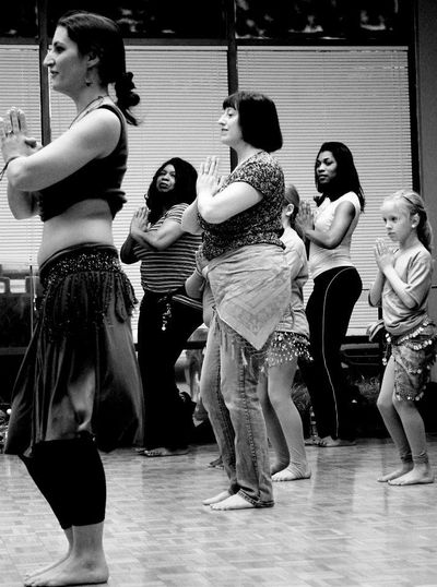 The beauty of bellydance class is that the more you put into it, the more you will get out of it. Whether you are looking for a relaxing, low-impact exercise that will be easy on the knees and back, or if you are looking to add a new aerobic workout to your exercise regiment, you'll find it in bellydance! The immediate reaction of most students is that they are using their thighs and glutes more than expected. By the end of class, you'll feel it in your abs. And we don't ignore the upper body or arms - with our elegant arm movements and ribcage movements, you'll be using muscles from head to toe. A typical class will burn anywhere from 250-500 calories, depending on how often we stop to break down a movement, and the type of technique being drilled.